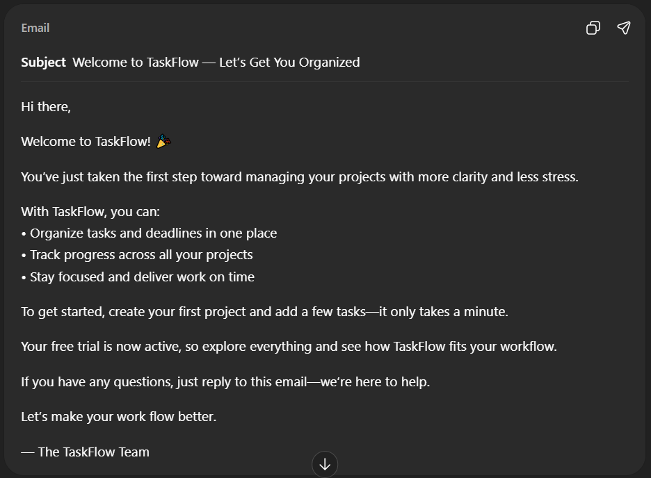 The email felt more natural and more focused. It didn’t just welcome the user — it guided them toward a clear next step.