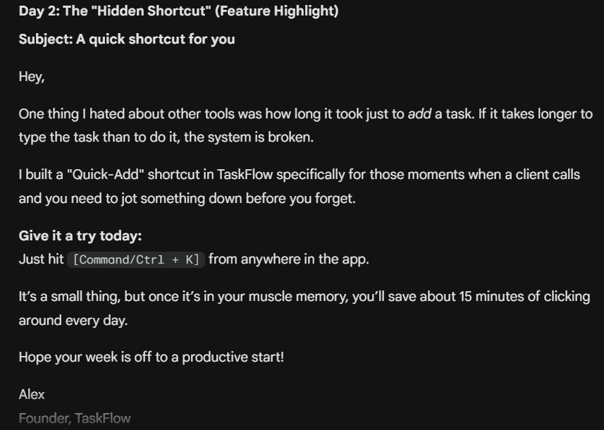 It also sounded less like a generic SaaS message and more like something a real founder would send.
